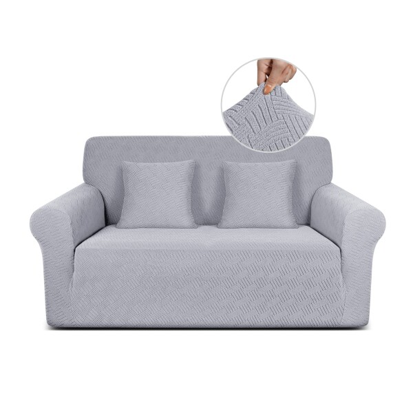 TAOCOCO ソファーカバー 1人2人3人掛け 肘付き 無地 縦横弾力 ストレッチ フィットタイプ 辣條? 滑り止め 柔らかい 伸縮素材 ソファー保護 キズ防止 爪とぎ防止 防塵 汚れ防止 犬猫対策 清潔簡単 装着便利 丸洗い可能 四季適用 (2人掛け, 新しいライトグレー)