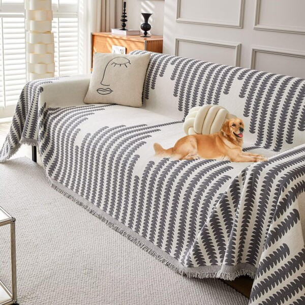 Nnamiiko マルチカバー ソファー 北欧風 犬猫対策 爪とぎ防止 おしゃれ ソファカバー 1人 2人掛け 3人掛け 肘付き かけるだけ マルチカバー ベッドカバー 長方形 大判 フリンジ付き ソファーベッド ブランケット 保護カバー 高密度シェニール織り 柔らかい 毛布 両面使える 四季兼用(1人掛け180-130cm, グレー)