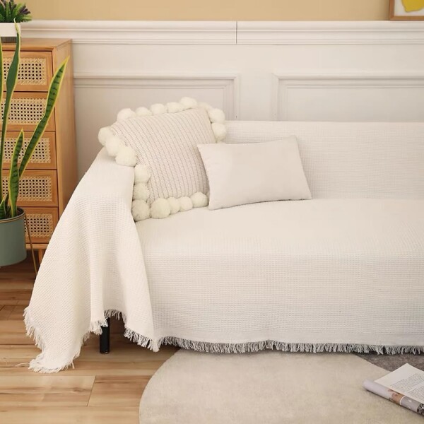 CAOSYE(カオシー)ソファーカバー ブランケット ソファー 多機能 汚れ防止 柔らかい ソファーシーツ 犬猫用シート 滑り止め ソファー保護カバー 通気 洗える 四季通用 おしゃれ リバーシブル フリンジ付き (ホワイト・ワッフル柄, 180*230)