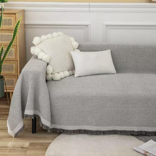 CAOSYE(カオシー)ソファーカバー ブランケット ソファー 多機能 汚れ防止 柔らかい ソファーシーツ 犬猫用シート 滑り止め ソファー保護カバー 通気 洗える 四季通用 おしゃれ リバーシブル フリンジ付き (グレーホワイト・ワッフル柄, 180*230)