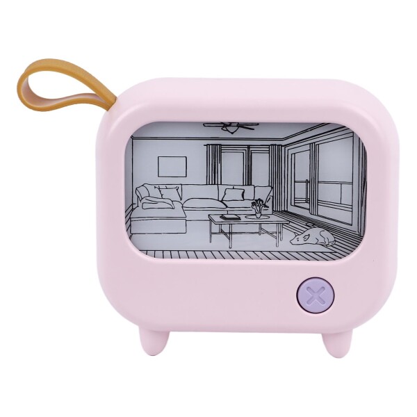 照明絵画装飾ナイトライト、2モードテレビ型ポータブルテーブルベッドサイドランプ家庭用ボタンコントロール (ピンク)