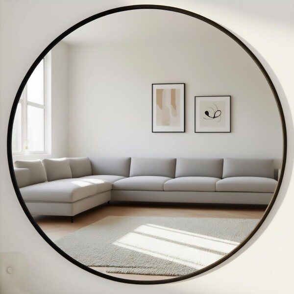 Genjitsu 鏡 壁掛けミラー 丸鏡 壁掛け鏡 洗面台 鏡 壁 洗面鏡 浴室 玄関 洗面所 鏡 化粧鏡 かがみ 円形 鏡 壁掛け 丸(ブラック,直径40cm)