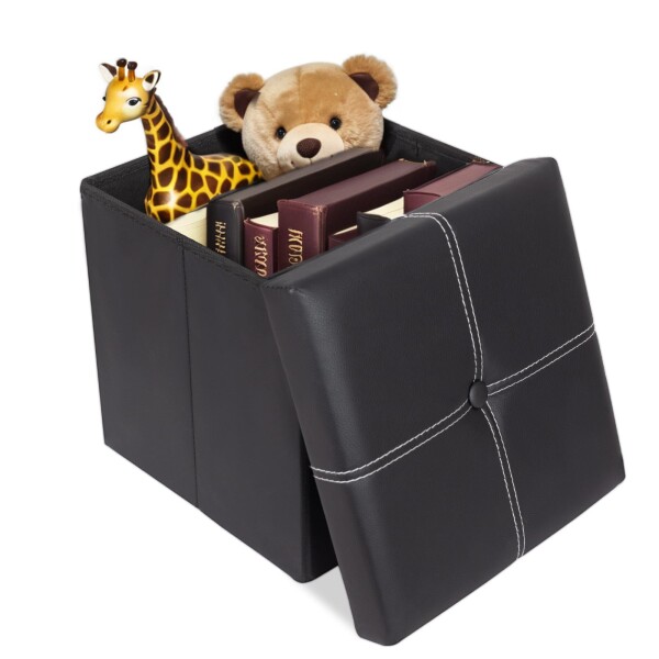 LONGSHINING 収納スツール 折りたたみ式 オットマン 幅30×奥行き30×高さ30cm 耐荷重80kg 収納ボックス 収納 足置き 椅子 踏み台 ボックススツール 持ち運びに便利 PUレザー リビング/玄関/寝室適用 (ブラック)