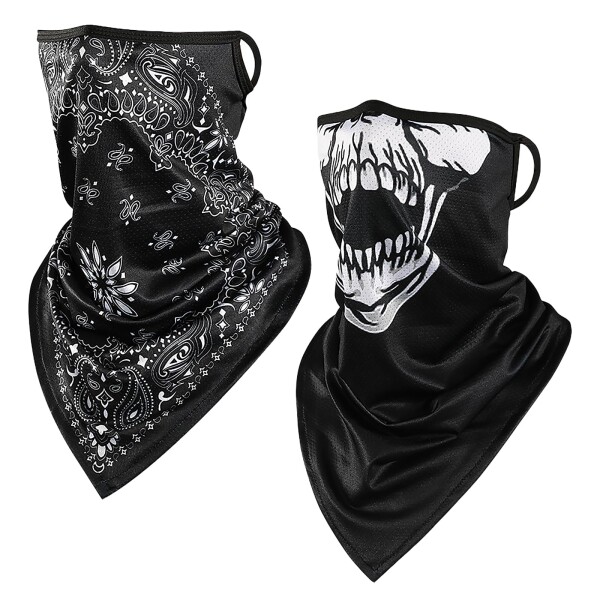 (DALO) フェイスカバー UV 対策 クール フェイスマスク ネックカバー スポーツ アウトドア (2_ペイズリー(1)/スカル)