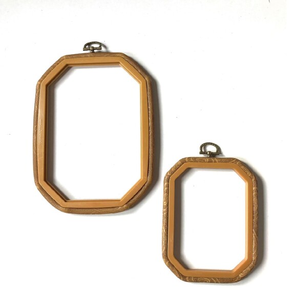 milkcat 刺しゅう枠 飾り金具付き キルティング フープ 2種セット 刺し子 木目調 飾り枠 道具 手芸 PP製 (D長方多角形)