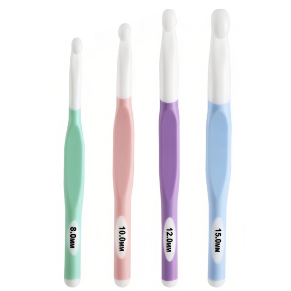 TOAURDA かぎ針セット かぎ針編みフックセット実用的 4本セット 8mm、10mm、12mm、15mm PRグリップとABSフックヘッド かぎ針編み キット 人間工学に基づいた 編み針セット手芸 便利 実用的 DIY用品