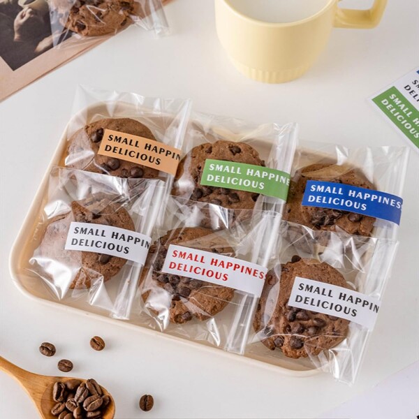 【封口方法について】可愛らしい英語の印刷が施された ステッカー100枚が付属しています。これにより、とても可愛らしくなっています。もちろん、透明なテープや熱シーラーを使用しても封をすることができます。