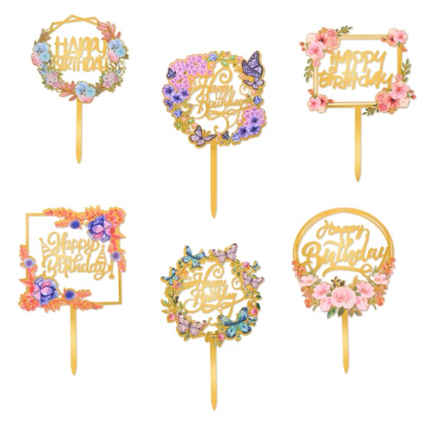 6枚セットの「HAPPY BIRTHDAY」ケーキトッパーです。アクリルのケーキトッパーで、特別な誕生日のお祝いをおしゃれに演出します?ささっと作ったケーキでも、トップに飾るだけで一気に華やかなケーキが出来上がり!ケーキトッパーでケーキの印象は大きく変わります!記念日や誕生日に飾るとパーティー気分が盛り上がります。