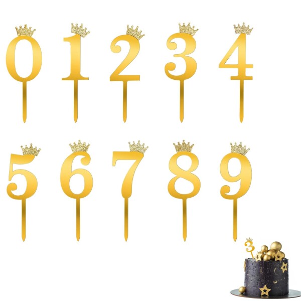 YIBOOOM ケーキトッパー 数字 誕生日 ケーキ飾りケーキ挿入カード 番号 0-9 10点セット カップケーキ ピック お祝い 記念日 ケーキデコレーション バースデーケーキ 飾り (ゴールド)