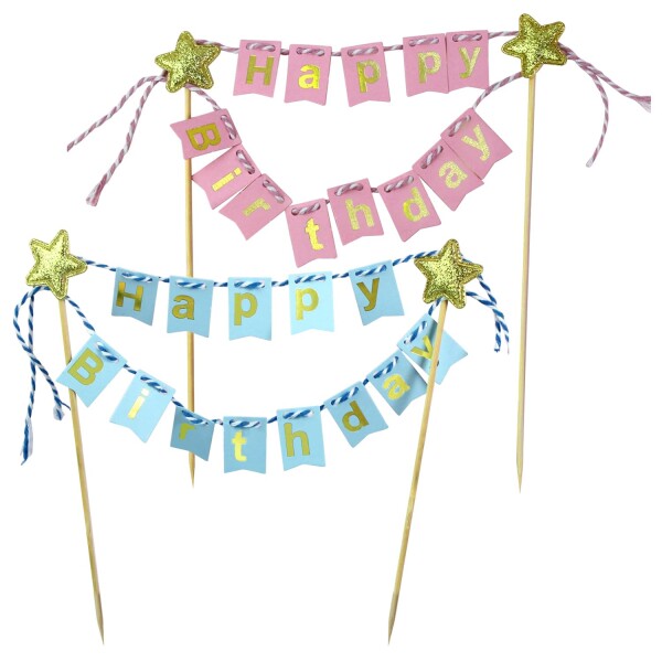 Happy Birthday ケーキトッパー誕生日ケーキ飾り 誕生日を祝う ケーキ装飾用品 写真撮影 結婚式 パーティー 誕生日(ブルー+ピンク)