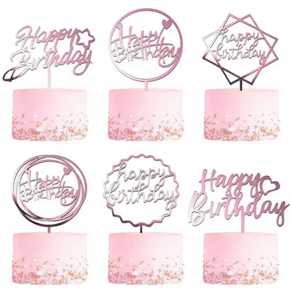 ケーキトッパー 7種類 ケーキ挿入カード ケーキ飾り ケーキ装飾用品 ッパー アクリル製「Happy Bir