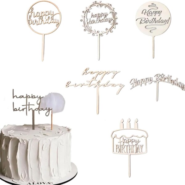 Mirhua 木製ケーキトッパー 誕生日ケーキ飾り ハッピーバースデー デコレーションピック パーティー装飾 6点セット Happy Birthday ハッピーバースデー バースデーパーティー ケーキ装飾用品