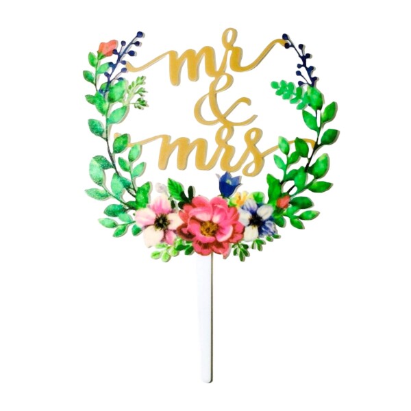 Agata ケーキトッパー Mr & Mrs ピック リーフ 結婚式 ウエディング ブライダル デコレーション カラフル ケーキ トッパー