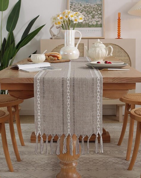 青未了 テーブルランナー 北欧 テーブルセンタークロス おしゃれ テーブルらんなー table runner テーブルセンター 布 食卓飾り タッセル 160 x 33cm フォーン