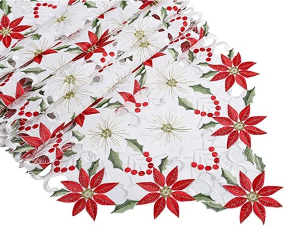 Flushbay クリスマス 飾り テーブルランナーおしゃれ 欧風 テーブルランナー 赤 花柄刺繍 食卓飾り
