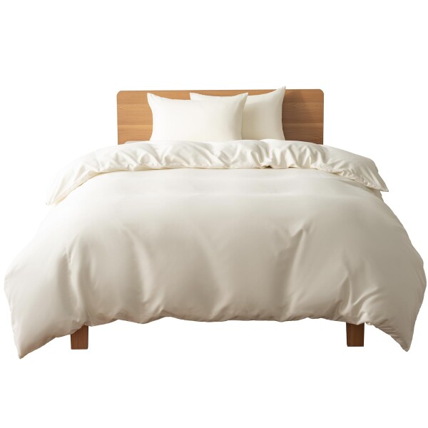 AZRA 掛け布団カバー シングル 150X210cm チャック付き おしゃれ オールシーズン ピーチスキン加工 通気 速乾 内側6ヵ所に紐付き 長辺全面ファスナータイプ 出し入れ簡単 アイボリー