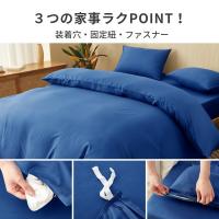 AZRA 掛け布団カバー シングル 150X210cm チャック付き おしゃれ オールシーズン ピーチスキン加工 通気 速乾 内側6ヵ所に紐付き 長辺全面ファスナータイプ 出し入れ簡単 ネイビー
