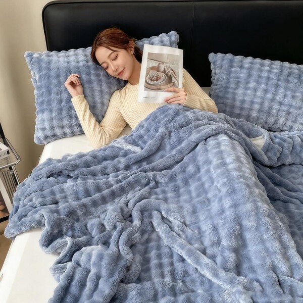 【ふわとろ毛布】ラビットファー調加工薄手毛布、ふんわりとしたなめらかな肌触り、高級感up、保温&吸湿&通気性良い、おしゃれなお部屋を演出してくれ、冷房対策、春夏秋冬一年中でも快適にお過ごしいただけるブランケットです。立体的な凹凸のあるデザインが、優雅で洗練されたスタイルを引き立てます。