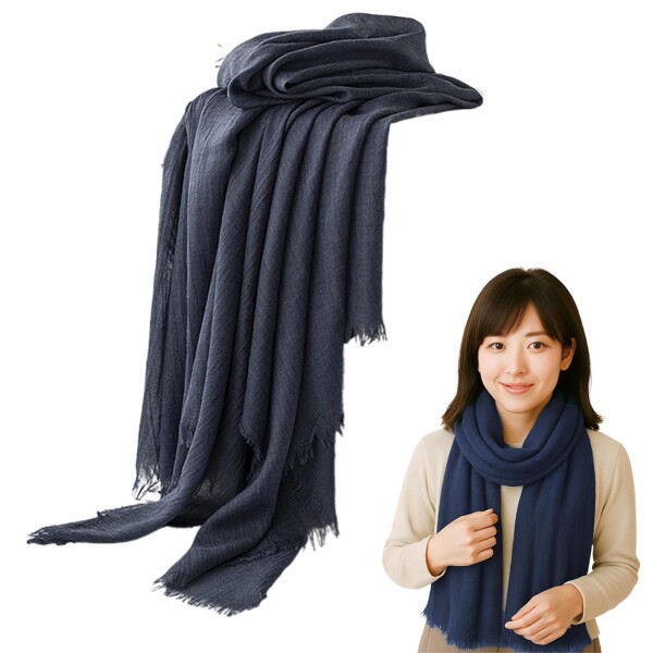 (NazyJnn) 大判ストール 薄手スカーフ UVカット 冷房対策・日焼け対策 春夏秋兼用 肌に優しい ショール 旅行・オフィス・海辺用 190×100cm ネイビーブルー