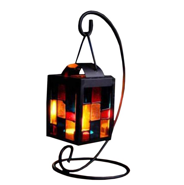 北欧 キャンドル スタンド ホルダー アンティーク 吊りフック付き ステンドグラス 格子デザイン