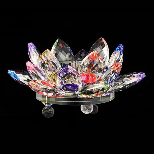 燭台 クリスタルガラス ロータスクリスタル ろうそく 蓮の花 インテリア 輪灯 仏前 神具 誕生日 金運 癒し け 勝負 恋愛 幸運 飾り (マルチカラー)