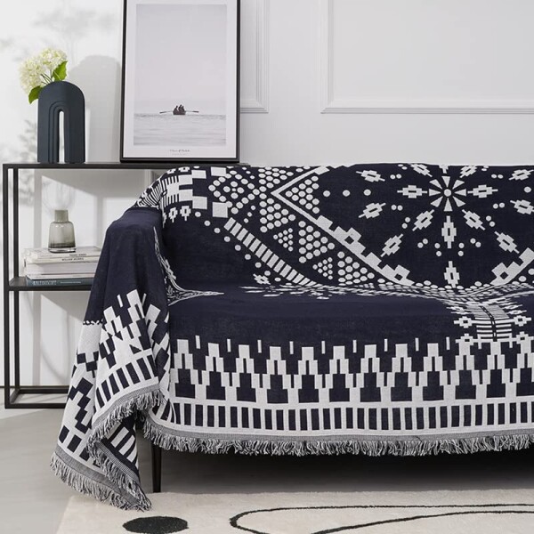 Kaoslen マルチカバー ソファカバー ピクニックシート 北欧風 ソファーかばー 多機能 ブランケット ベッドカバー フリンジ付き ソファ、ベッドカバー、毛布、テーブルクロスなどに適しています 汚れ防止 滑り止め 傷防止 防塵 四季通用 幾何系 130*180cm(1-2人掛け)