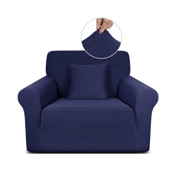 TAOCOCO ソファーカバー 1人2人3人掛け 肘付き 無地 縦横弾力 ストレッチ フィットタイプ 辣條? 滑り止め 柔らかい 伸縮素材 ソファー保護 キズ防止 爪とぎ防止 防塵 汚れ防止 犬猫対策 清潔簡単 装着便利 丸洗い可能 四季適用 (1人掛け, ダークブルー)