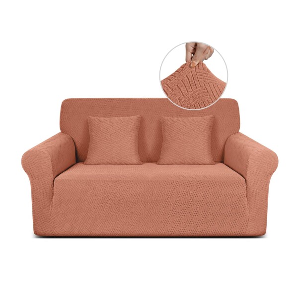 TAOCOCO ソファーカバー 1人2人3人掛け 肘付き 無地 縦横弾力 ストレッチ フィットタイプ 辣條? 滑り止め 柔らかい 伸縮素材 ソファー保護 キズ防止 爪とぎ防止 防塵 汚れ防止 犬猫対策 清潔簡単 装着便利 丸洗い可能 四季適用 (2人掛け, 新しいオレンジ)