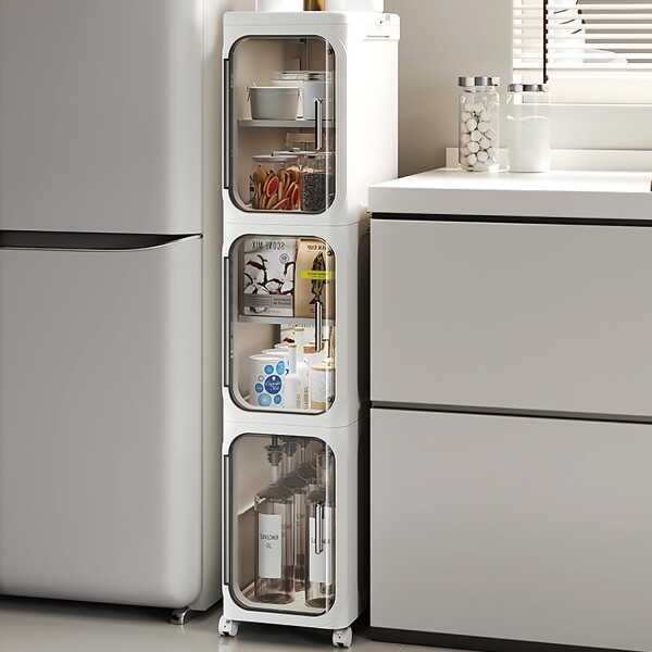 【省スペース設計】:現代社会において、居住スペースの有効利用はますます重要になってきています。隙間収納キャビネットは、このようなニーズに応えるために生まれたモダンな設計の収納家具です。このスリムラックは、精巧な設計思想に基づいて、最小限のスペースを利用して最大の収納容量を提供します。普段では、キャビネットや冷蔵庫の横にある狭いスペースは、一見すると何の役にも立たないように見えます。しかし、この隙間収納キャビ
