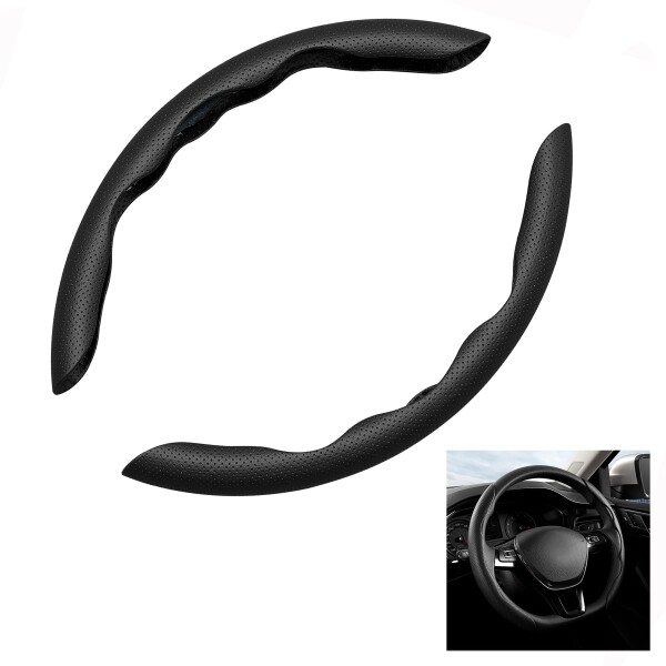 Briskyjp ハンドルカバー レザー パーフォレーション 夏 汗の吸収 アンチスリップ 超薄型 S・M兼用 (パンチングレザー, 黒)
