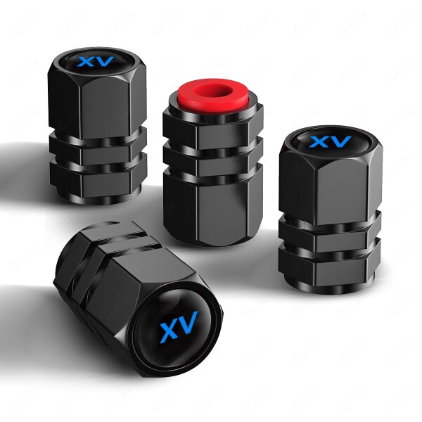 新型スバル用 エアバルブキャップ XV GT系 などに適用 タイヤエアバルブ キャップ アルミ合金製 自動車 ドレスアップパーツ 4個セット 気密性良好 軽量 高強度 腐食防止 簡単取り付け (XV, ブラック)