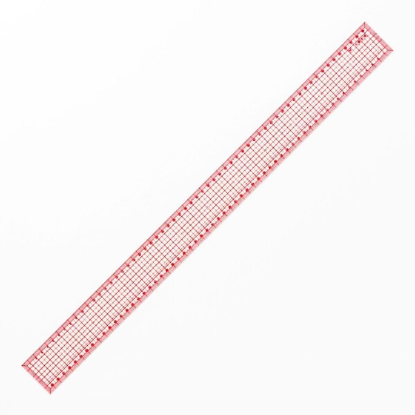 5mmの方眼が全面に描かれた硬質塩化ビニール製の透明な定規で、特に平行線を描いたり、パターンの縫い代を付ける際に使用します。 12mmの縫い代ラインが入っています。