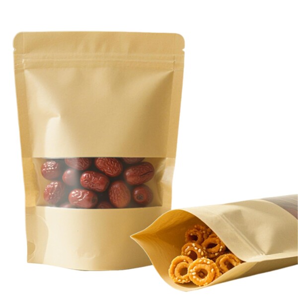 説明クラフト 紙袋 密閉袋 窓付き ジップ袋 食品収納袋 コーヒー袋 ジッパー付き 防水 防湿 耐油 自立 お菓子 食品用 小分け用 ラッピング 小物収納 保存用