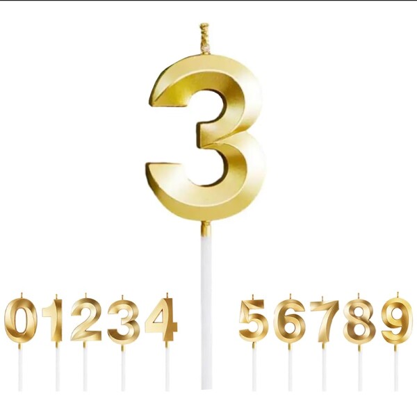 【3 Dビジュアル誕生日キャンドル】金色の3誕生日キャンドルを受け取ります。デジタル3キャンドルは高さ約50 mm、総高さ約130 mmで、ほとんどのサイズのケーキ装飾に適しています。 ?