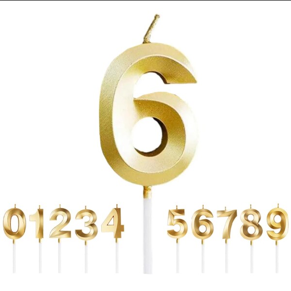 【3 Dビジュアル誕生日キャンドル】金色の6誕生日キャンドルを受け取ります。デジタル6キャンドルは高さ約50 mm、総高さ約130 mmで、ほとんどのサイズのケーキ装飾に適しています。 ?