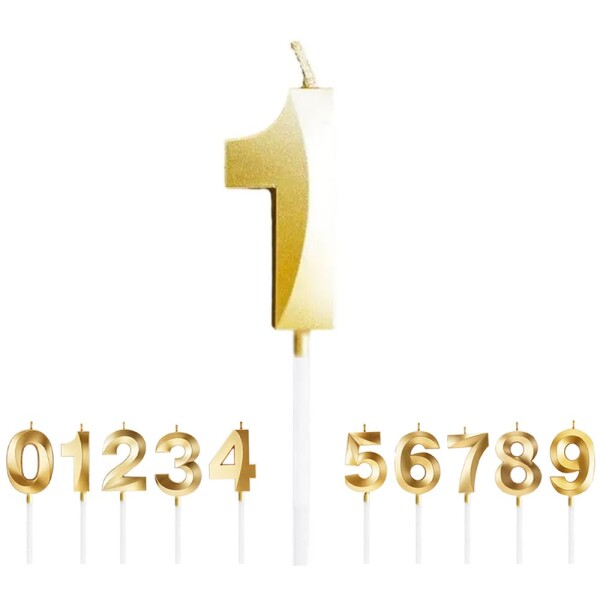 【3 Dビジュアル誕生日キャンドル】金色の1誕生日キャンドルを受け取ります。デジタル1キャンドルは高さ約50 mm、総高さ約130 mmで、ほとんどのサイズのケーキ装飾に適しています。 ?