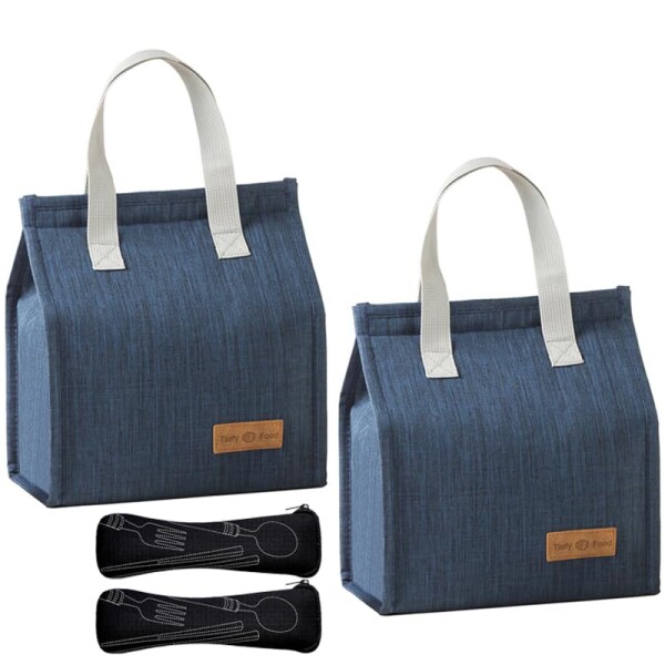 ランチバッグ 保冷バッグ 大容量 断熱袋 厚手保温バッグ ランチトートバッグ 保温バッグ 通勤 通学 ピクニック 仕事 オフィス 旅行用 男女兼用 1つの食器収納バッグ (ブルー)