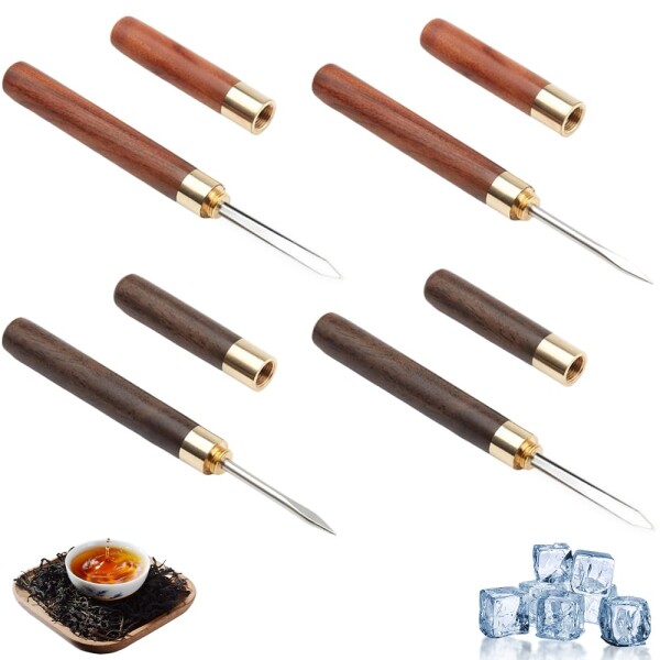 アイスピック 木目調 4本セット ステンレススチール 木製ハンドル 氷割り 砕氷道具 保護キャップ付き 誤傷防止収納デザイン 耐久性 軽量 携帯 多用途 茶餅 氷のかたまり 冷蔵庫の氷でも 家庭用 キッチン カクテル ピクニック(黒檀木/梨花木)