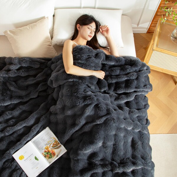 Haguko 毛布 シングル ふわとろ ブランケット 大判 モコモコ ふわふわ おしゃれ 暖かい ぽこぽこ 可愛い もふもふ 洗える (140x200,ネブラスカグレー)