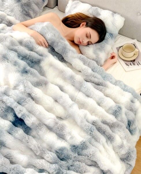 JUNHOTAI 毛布 冬用 ふわふわ毛布 シングル 二枚合わせ ブランケット 2025新色 絞り染めシルバーグ