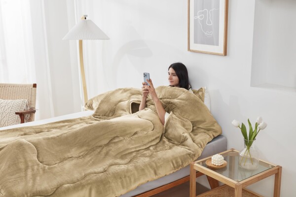 Tametra 毛布 2枚合わせ綿入り 掛け布団 シングル 冬用 暖かい フランネル マイクロファイバー 毛玉なし なめらか 毛布タッチ 秋冬用 パイル地 吸湿発熱 保湿機能 抗菌防臭加工 丸洗いOK 防寒対策 シングル 150?210cm ベージュ