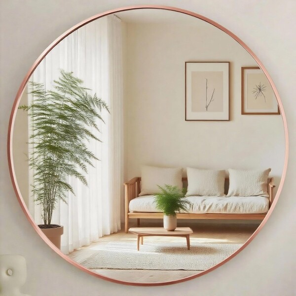 Genjitsu 鏡 壁掛けミラー 丸鏡 壁掛け鏡 洗面台 鏡 壁 洗面鏡 浴室 玄関 洗面所 鏡 化粧鏡 かがみ 円形 鏡 壁掛け 丸(ローズゴールド色,直径50cm)
