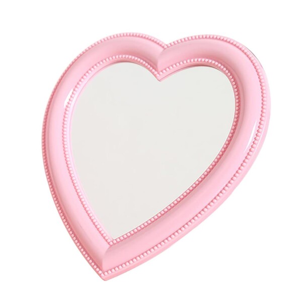 Mokoze ハート型ミラー デスクや壁用、27.9 cm x 26.9 cm ライトピンク バニティミラー スタンド&吊り