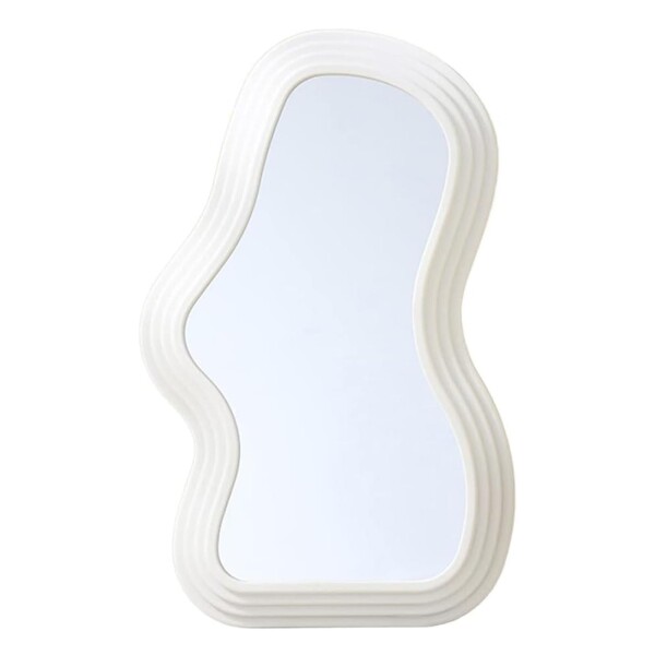 Mokoze 非対称壁掛けミラー クリエイティブでユニークな装飾ミラー ファンキーな波状ミラー 15.94インチx10.24インチ イレギュラーボーダー ホワイトミラー バスルーム リビングルーム 装飾用