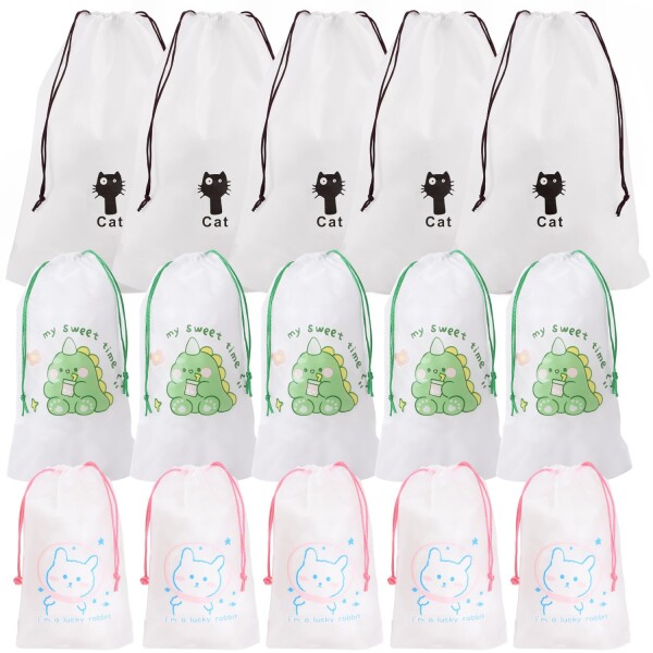 巾着袋 きんちゃく袋 ビニール 防水 温泉バッグ 小分け ビニール袋 着替え袋 靴入れ袋 トラベルポーチ 旅行 小物入れ (うさぎ・恐竜・ねこ)