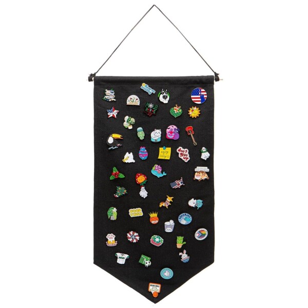 サムコス ブローチ・缶バッジ収納 ウォールポケット 両面収納 壁掛け式 吊り下げ式 省スペース収納 コレクション展示に最適 イヤリング ネックレス兼用 小物整理 ディスプレイ収納 (ブラック)