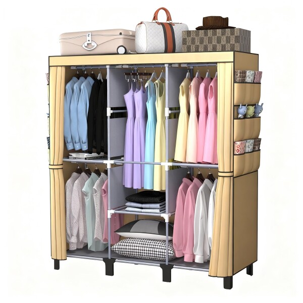 衣装庫、ジッパー付きポータブル衣装庫。ポータブル衣装庫は衣服を吊るすために使用し、4 本の吊り棒と収納キャビネットを備え、広く大容量の収納スペースを有しています簡易クローゼット、は幅170 cm、奥行き45 cm、高さ172 cmで (Cream Color, 大サイズ 130cm 幅)