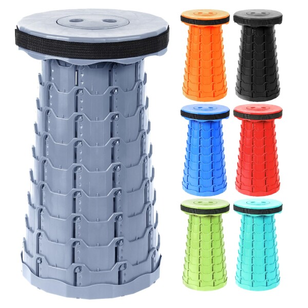 (Ouestock) 折りたたみ椅子 携帯椅子 踏み台 伸縮式 ジャバラ 1本足 丸 軽量 コンパクト 持ち運び 耐荷重220kg アウトドア 旅行 キャンプ チェア (グレー)