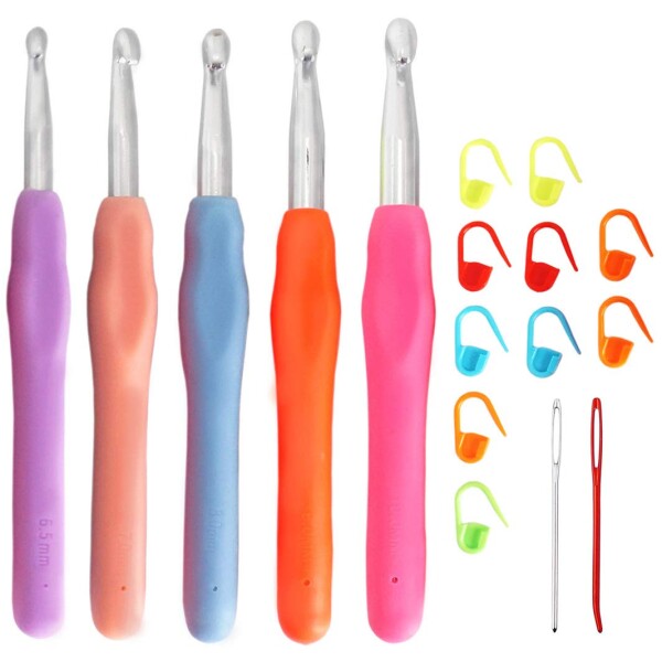 かぎ針 17点セット 5本編み針 レース針 手あみ針 編み棒 DIY手芸 編み物 毛糸 クラフト 道具