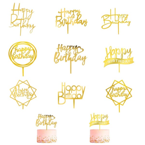 YAARUJEE ケーキトッパー 誕生日ケーキ 飾り 9種類セット ケーキピック ハッピーバースデー 飾り アクリル製 ゴールド おしゃれ デコレーション ケーキ挿入カード パーティー装飾